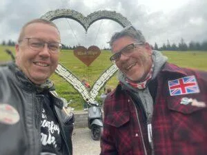 Nach Morgendlicher Ausfahrt ins Lechtal mit Mittagessen nach Gramais (kleinste Gemeinde Österreichs), wurde das Treffen traditionell von Franz Schmalzl und Nicole Egger auf der Rud-Alpe eröffnet. Mit Albhornbläsern und ortstypischer Live-Musik wurde oberhalb von Lech auf der Terrasse der Hütte geschunkelt und gesunden – und das Wiedersehen gefeiert. Abrundet wurde der Tag auf der Passhöhe des Flexenpass (1.773 m). Vor und in der Hütte auf der Europäischen Wasserscheide wurde bei strömenden Regen bis nach Mitternacht mit Lichtershow und Brotzeit gefeiert.