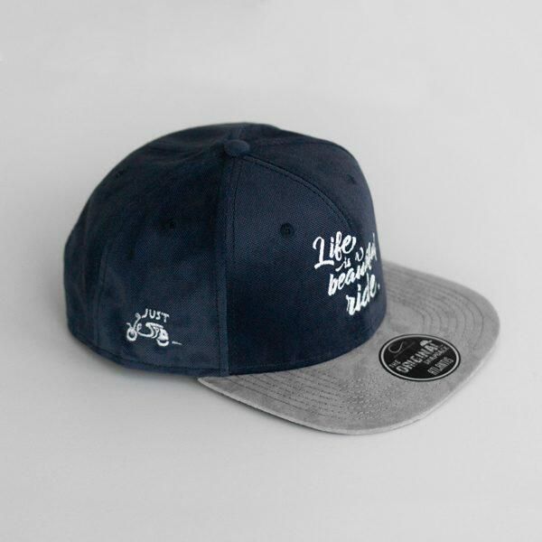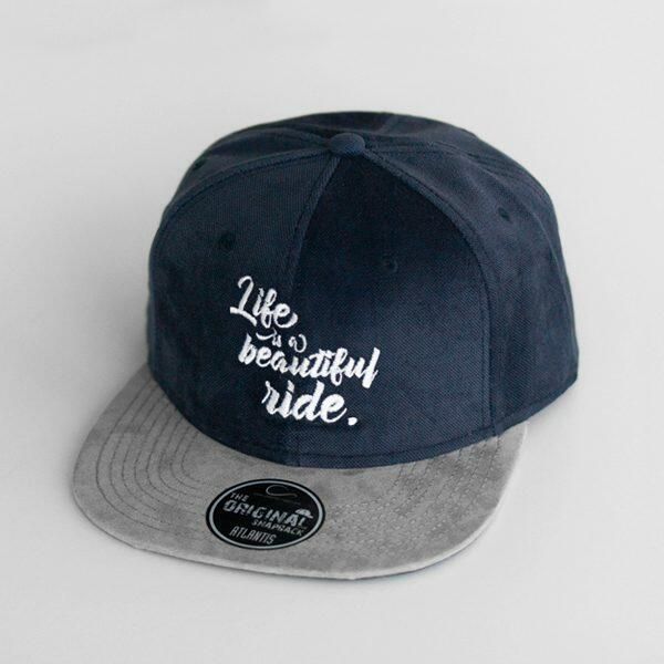 Cap mit gesticktem Motiv „Life is a beautiful ride“ in der Farbe Avio(blau)/Grau.