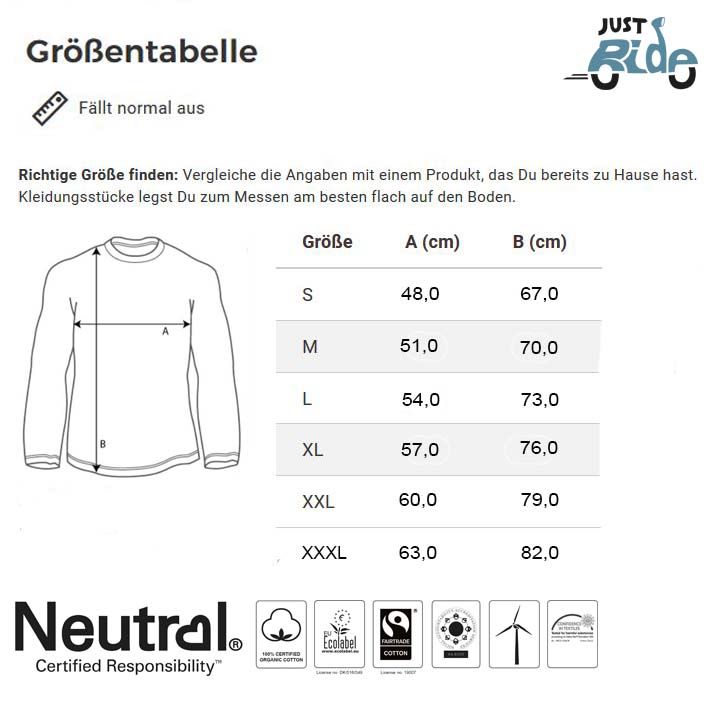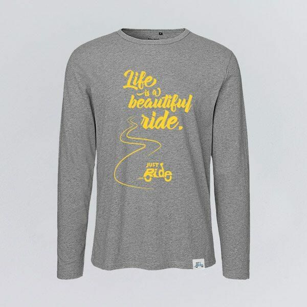 Graues Longsleeve „Life is a beautiful ride – JustRide“ für Herren. (Biobaumwolle, Fair Trade)