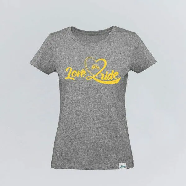 Graues T-Shirt „Love 2 Ride“ für Damen, 100% Baumwolle.