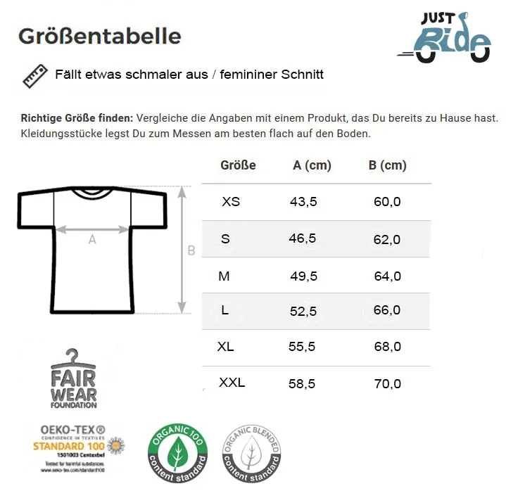 Erhältlich in den Größen XS, S, M, L, XL, XXL (schmaler Schnitt)