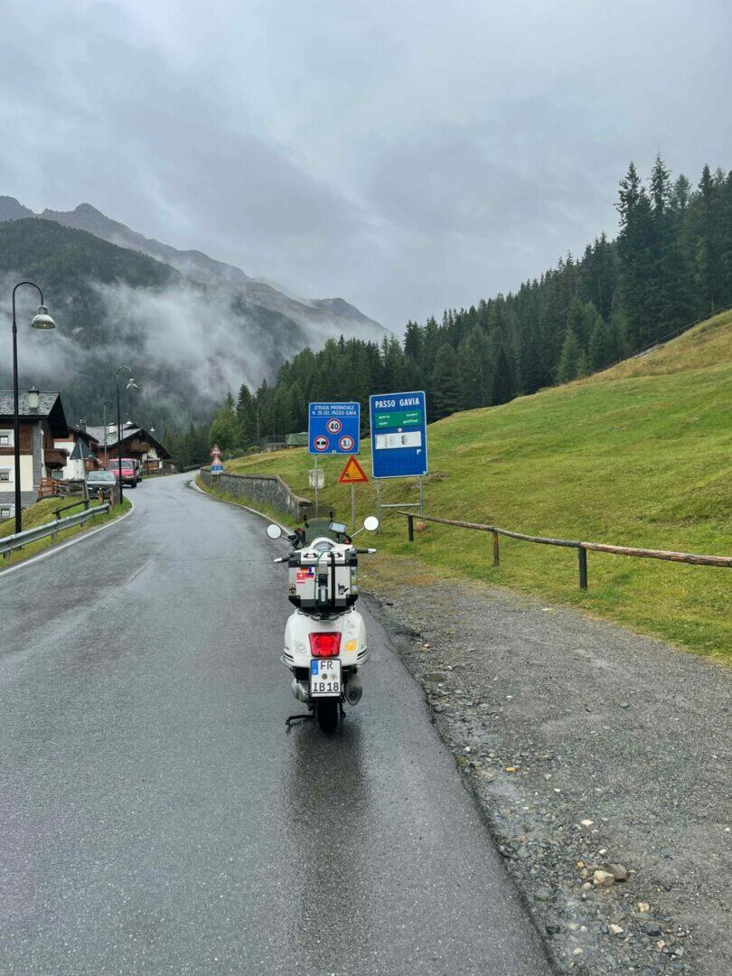 Von Bormio führte am Morgen des 2. Tages die Strecke gleich hinauf über einen der Könige der Alpenpässe – dem Gavia-Pass (2.621 m). Bei teilweise Starkregen ging es über den sechshöchsten Alpenpass mit vielen engen Kurven, anfangs im Wald, später durch Felsformationen und Tunnel.