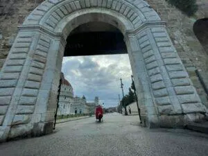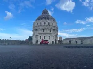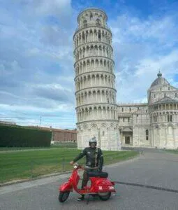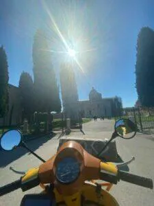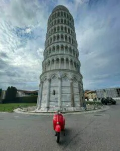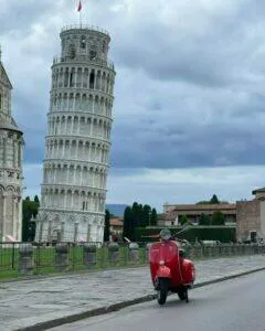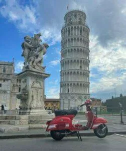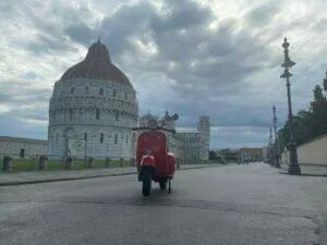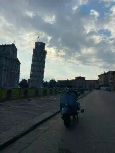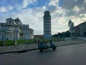 Ganz besonders schön ist der früh morgendliche Besuch des Piazza del Duomo mit dem schiefen Turm von Pisa – noch bevor die Touristen über den Dom und den Tum herfallen, um Fotos in unterschiedlichen Stellungen zu machen. Wachpersonal und Soldaten sind noch entspannt und lassen einem mit der Vespa vor Turm & Dom stimmungsvolle Fotos machen.